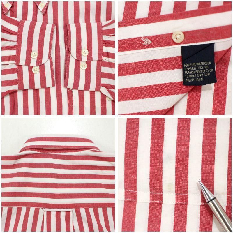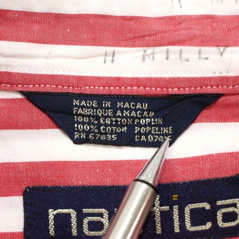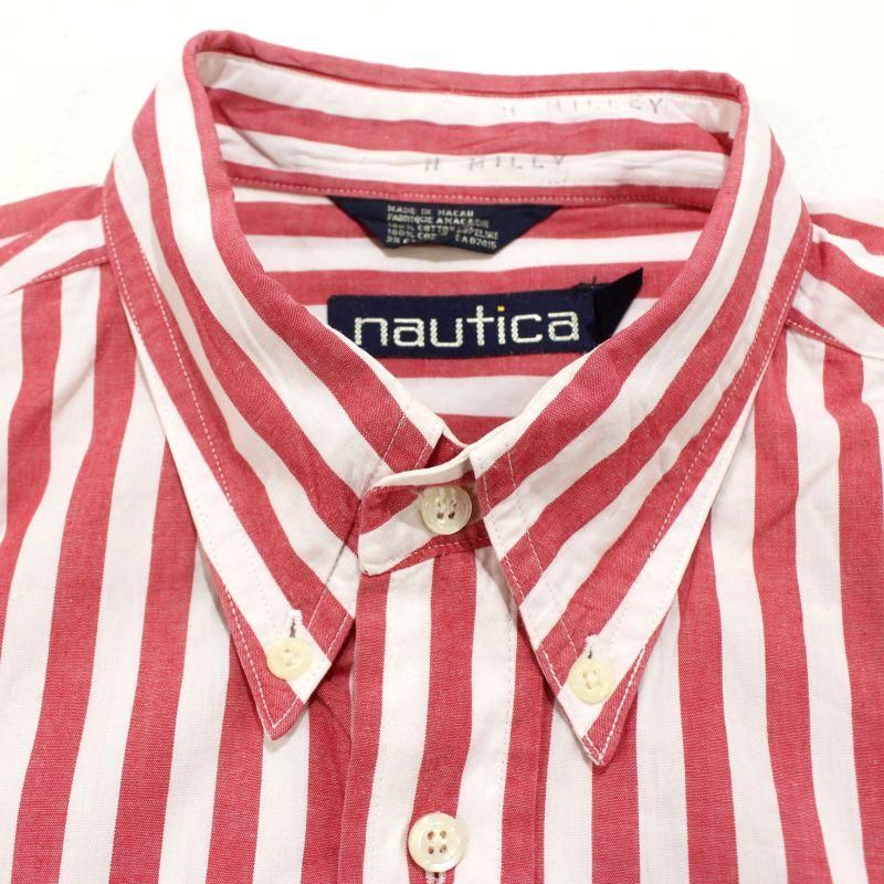 90s vintage NAUTICA ストライプ柄 ボタンダウン 長袖シャツ メンズ 表記Lサイズ