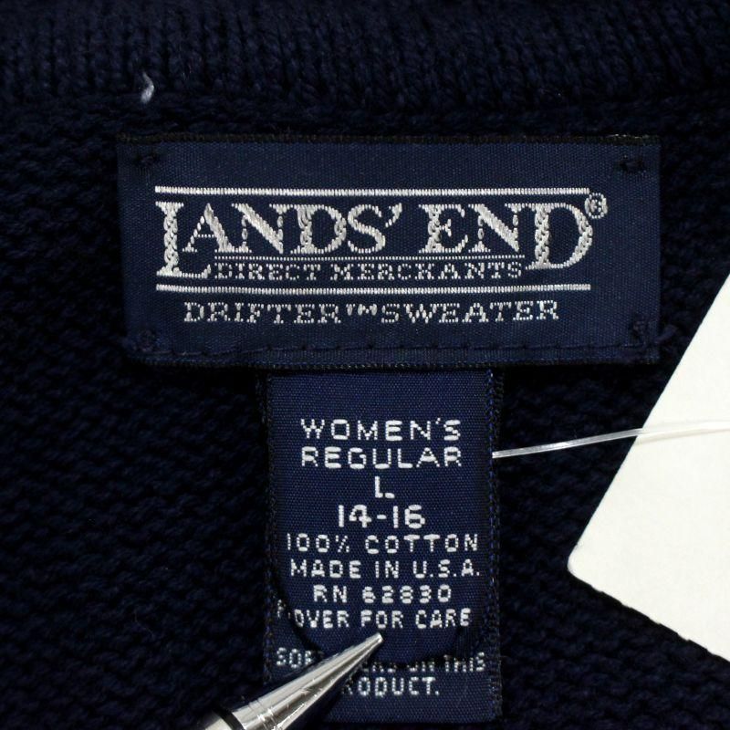DEADSTOCK 90s USA製 vintage LANDS' END 無地 コットン ニットセーター レディース 表記Lサイズ