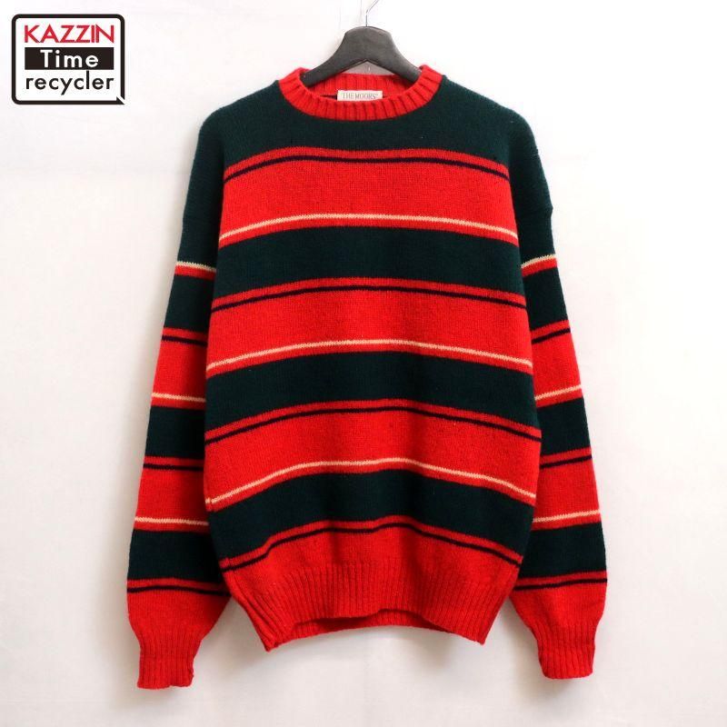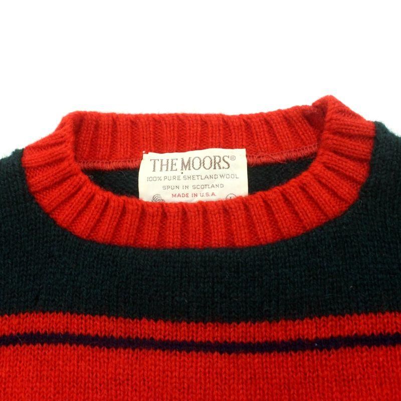 70年代 USA製 vintage THEMOORS マルチボーダー柄 シェットランドウール ニットセーター メンズ 表記Lサイズ