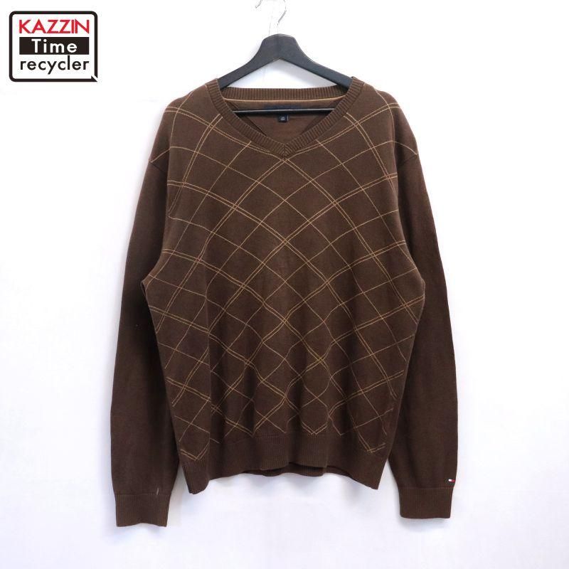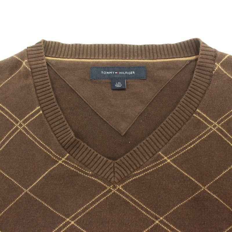 00s TOMMY HILFIGER アーガイルチェック柄 Vネック コットン ニットセーター 表記Lサイズ