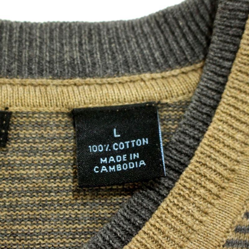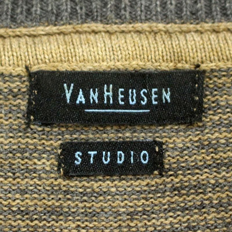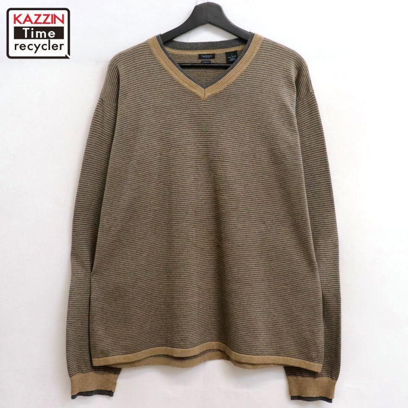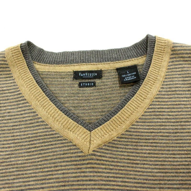 00s VANHEUSEN ボーダー柄 Vネック コットン ニットセーター メンズ 表記Lサイズ