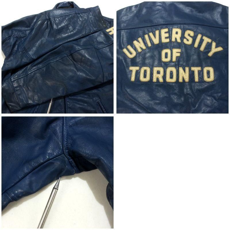 70s vintage トロント大学 オールレザー スタジャン メンズ 表記42サイズ