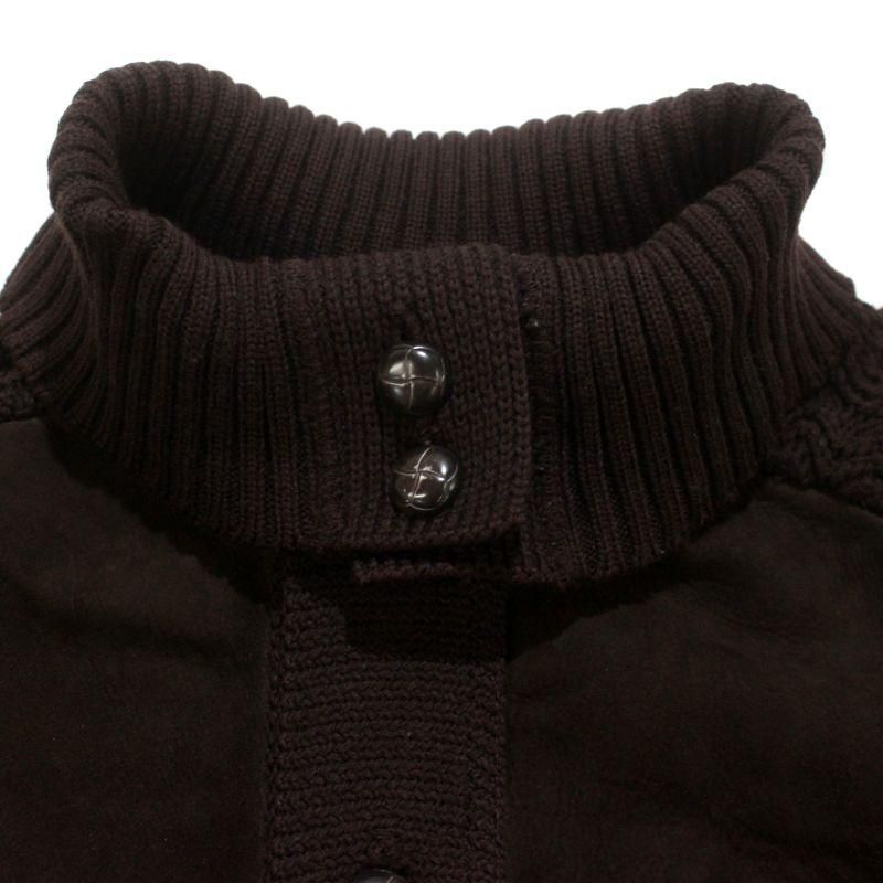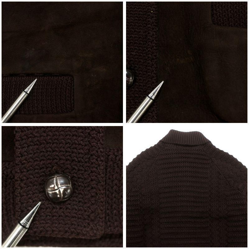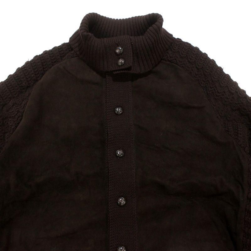 70s vintage ヌバック レザー 切り替え ニットカーディガン メンズ Lサイズ相当