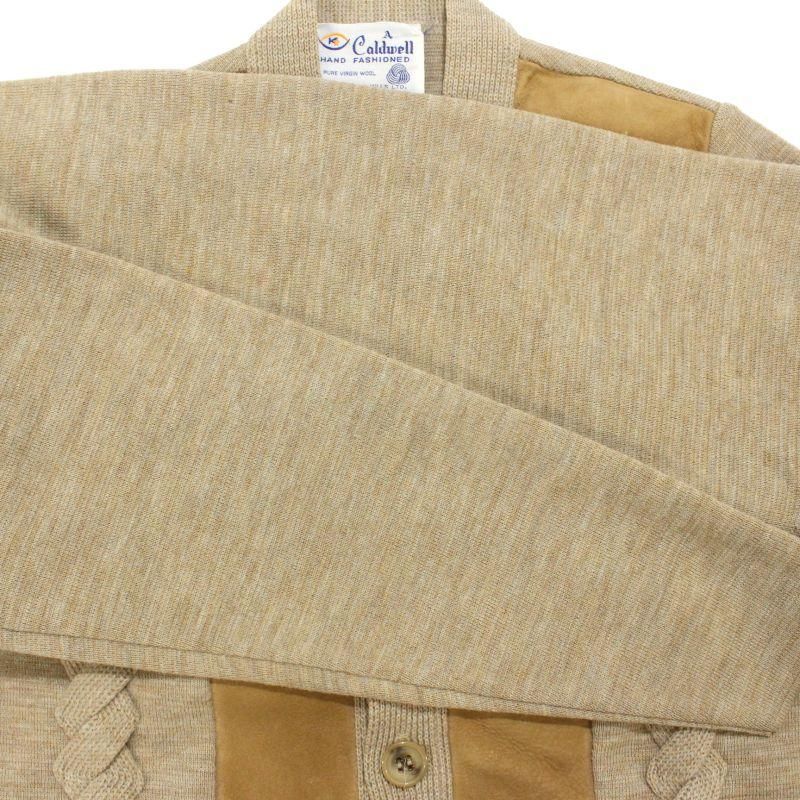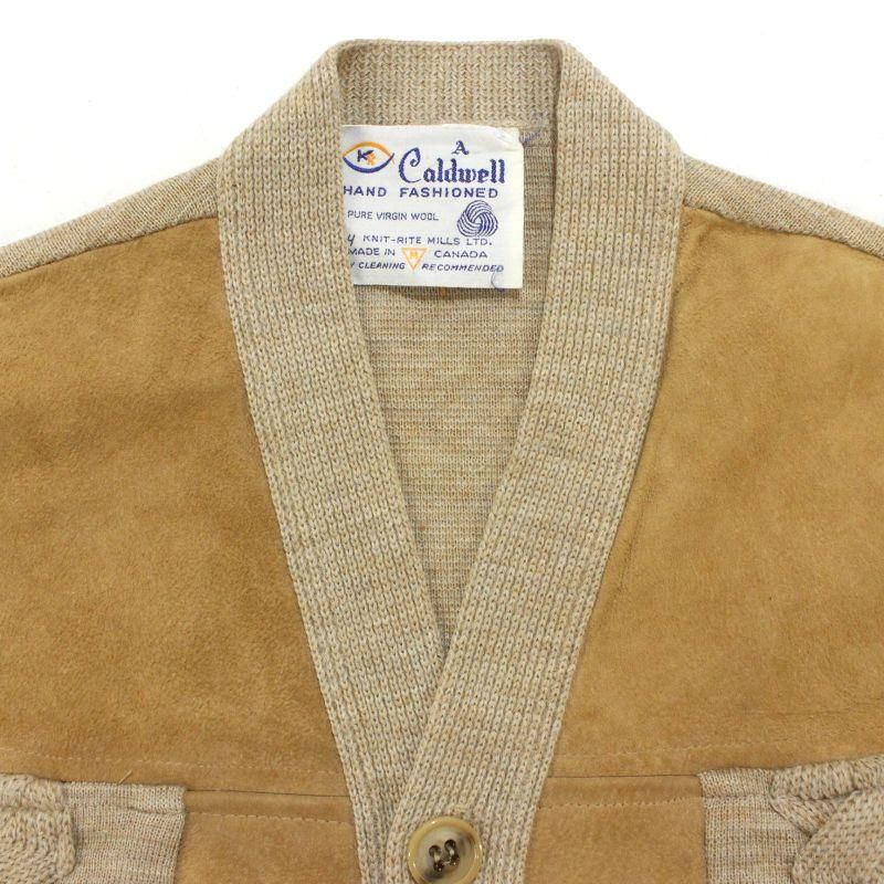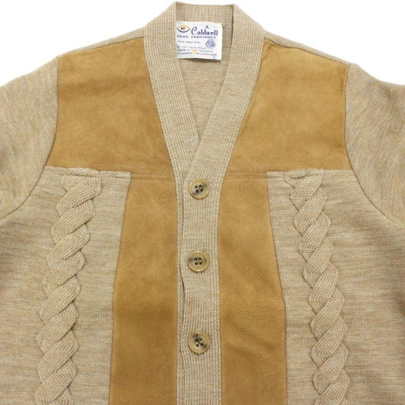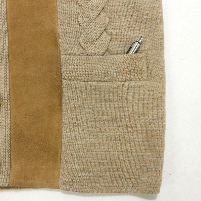 80s vintage ヌバック レザー 切り替え ニットカーディガン メンズ 表記Mサイズ