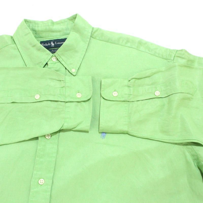 00s RALPH LAUREN シルクリネン ボタンダウン 長袖シャツ メンズ