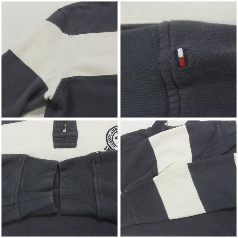 00s TOMMY HILFIGER ボーダー柄 ハーフジップ スウェット トレーナー メンズ 表記Lサイズ