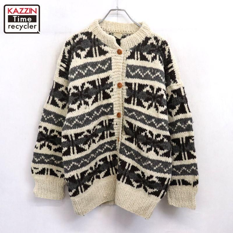 80s vintage 総柄 エクアドル ウール ニットカーディガン レディース Lサイズ相当