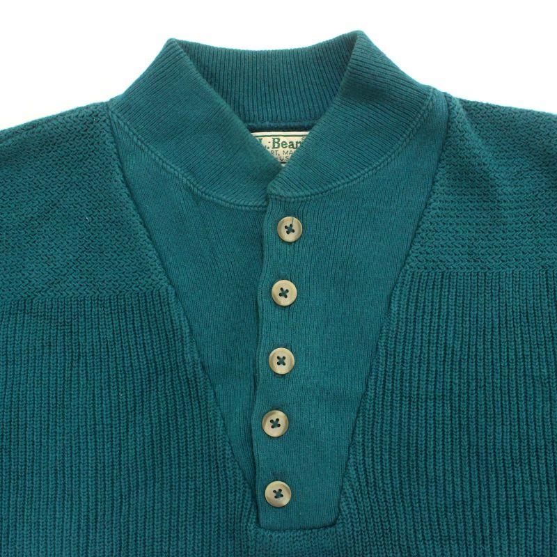 80s USA製 vintage L.L.Bean ヘンリーネック コットン ニットセーター メンズ 表記Mサイズ