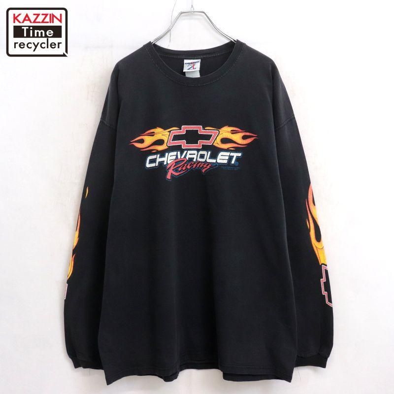 00s JERZEES ファイヤーパターン 袖プリント レーシング 長袖Tシャツ メンズ 表記XLサイズ