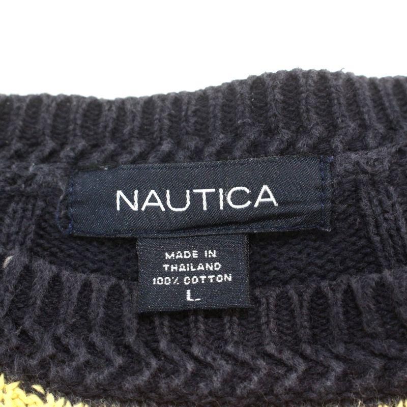00s NAUTICA マルチボーダー柄 コットン ニットセーター メンズ 表記Lサイズ