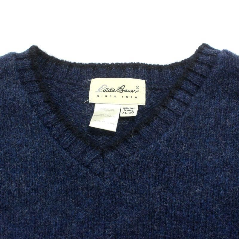 90s USA製 vintage Eddie Bauer Vネック フェアアイル バースアイ ウール ニットセーター レディース 表記XLサイズ