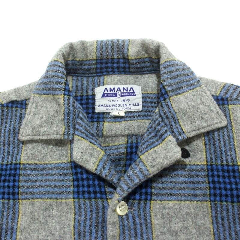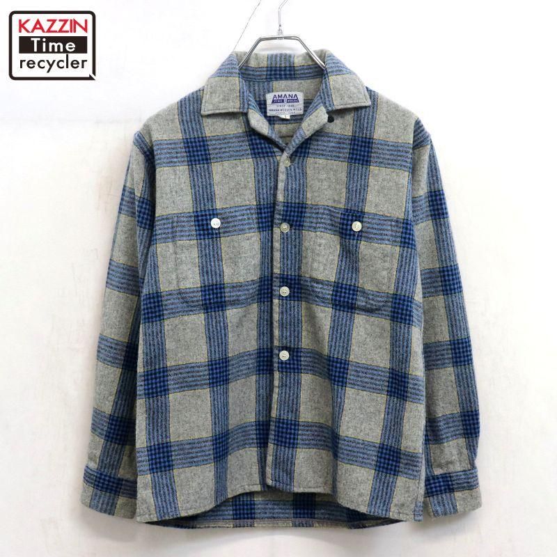 60s vintage AMANA チェック柄 ウール オープンカラー 長袖シャツ メンズ 表記Sサイズ
