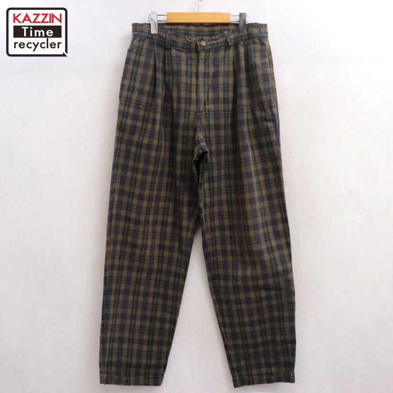90s USA製 vintage GAP チェック柄 コットン 2タック スラックスパンツ メンズ Mサイズ相当