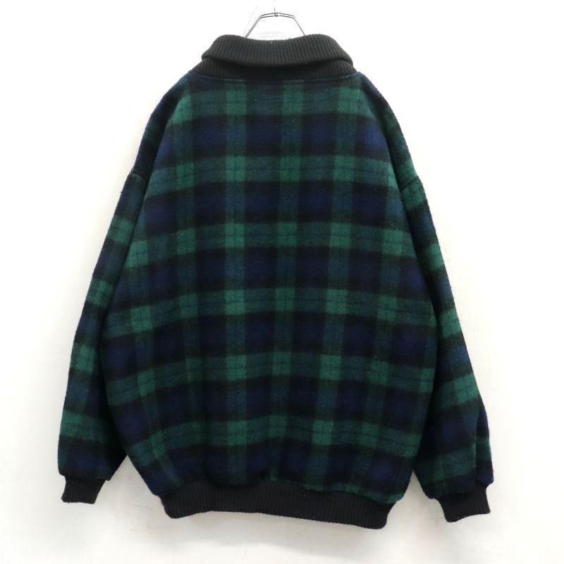 80s USA製 vintage チェック柄 ショールカラー プルオーバー ブラックウォッチ ウール ジャケット メンズ 表記Mサイズ