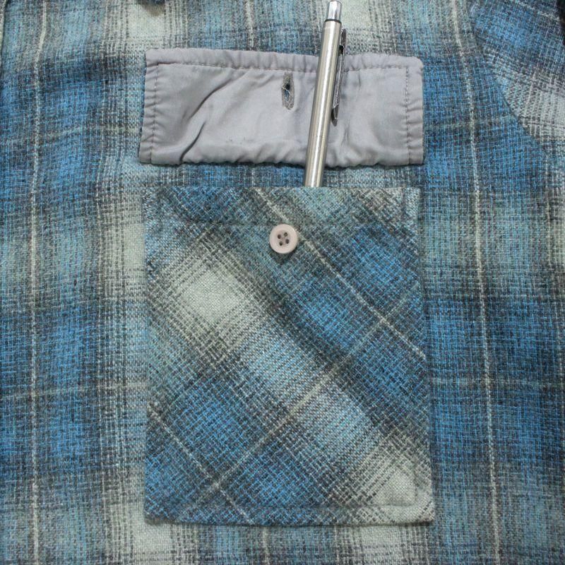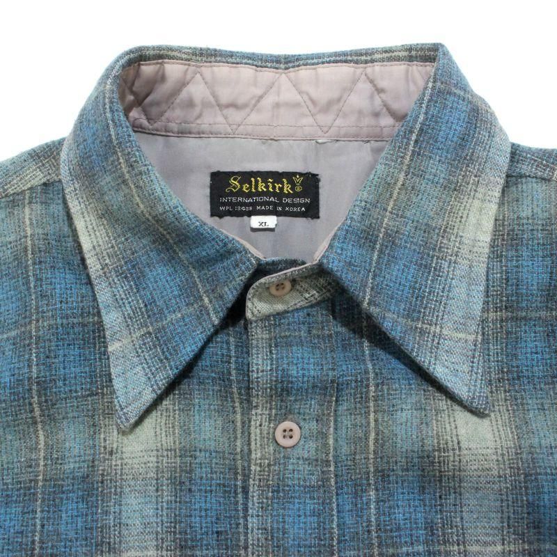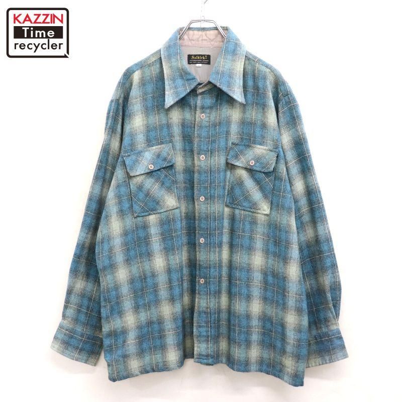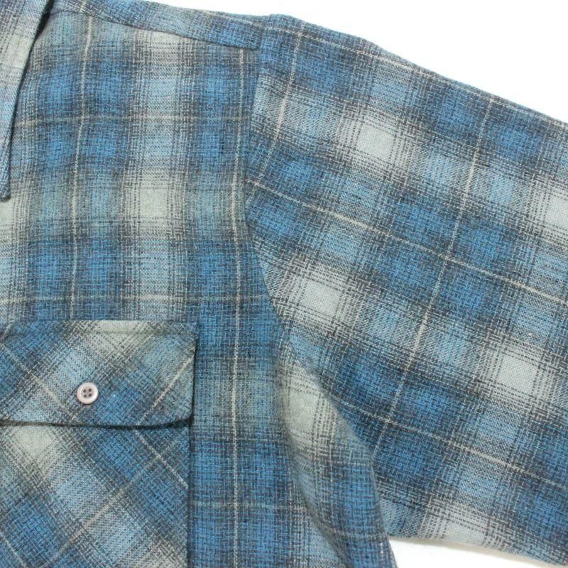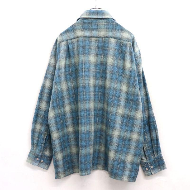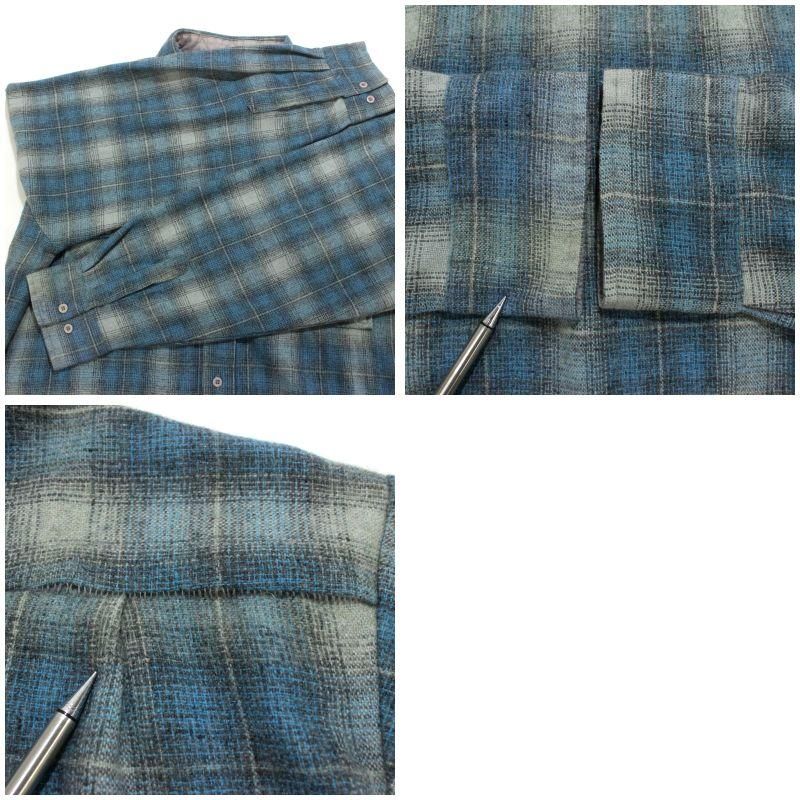 80s vintage オンブレチェック柄 ボックスシルエット ウール 長袖シャツ メンズ 表記XLサイズ