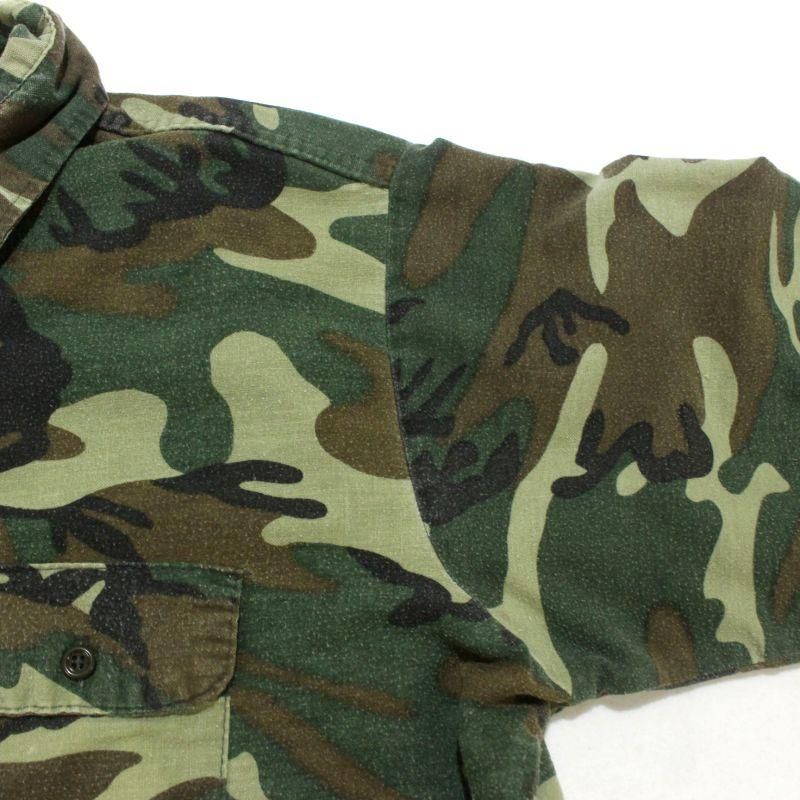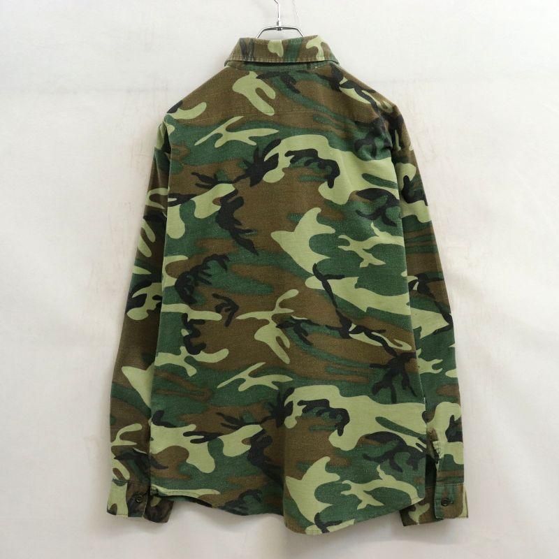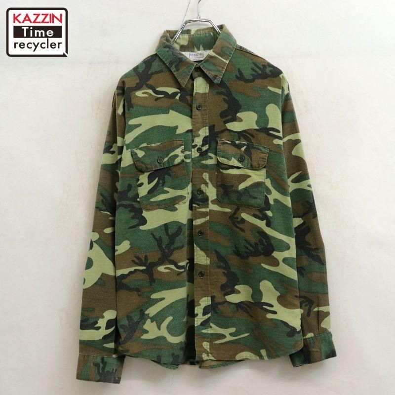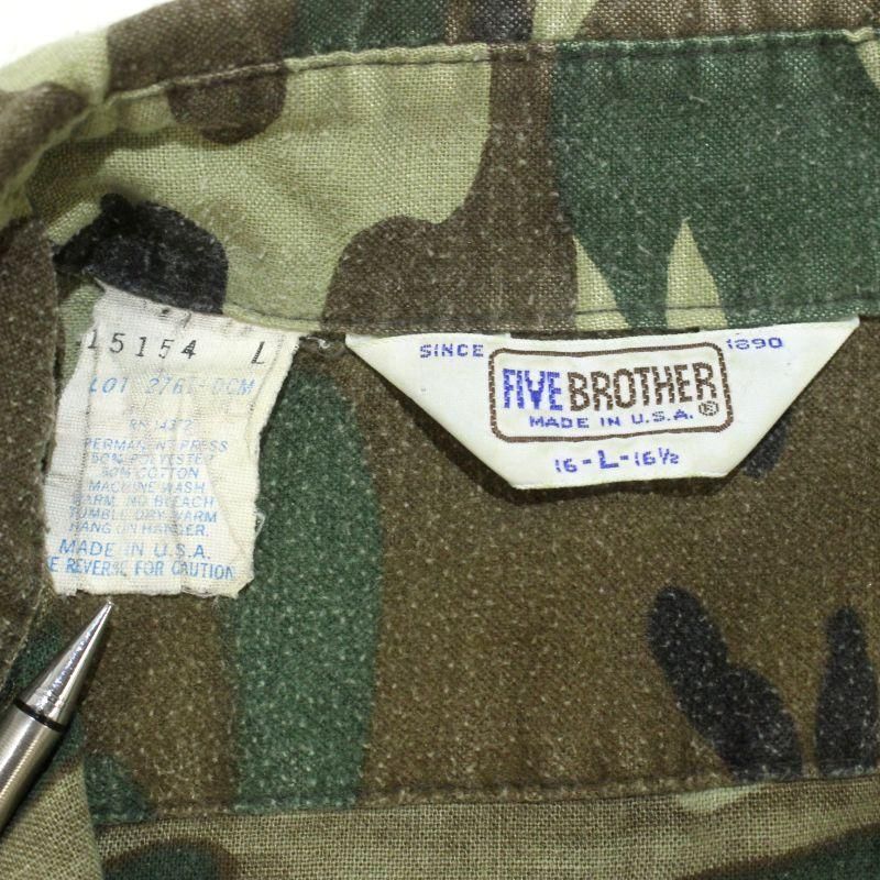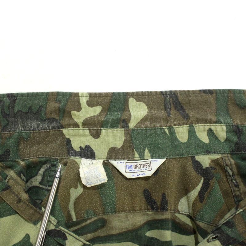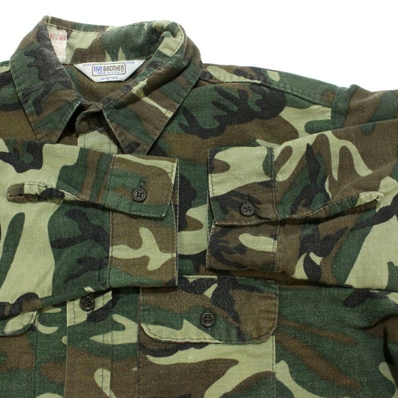 80s USA製 vintage FIVE BROTHER ウッドランドカモ シャモアクロス 長袖シャツ メンズ 表記Lサイズ