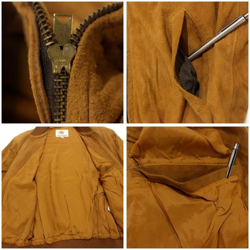 70s USA製 vintage Golden Bear ゴールデン ベア カフスプロテクター ヌバック レザージャケット メンズ Lサイズ相当