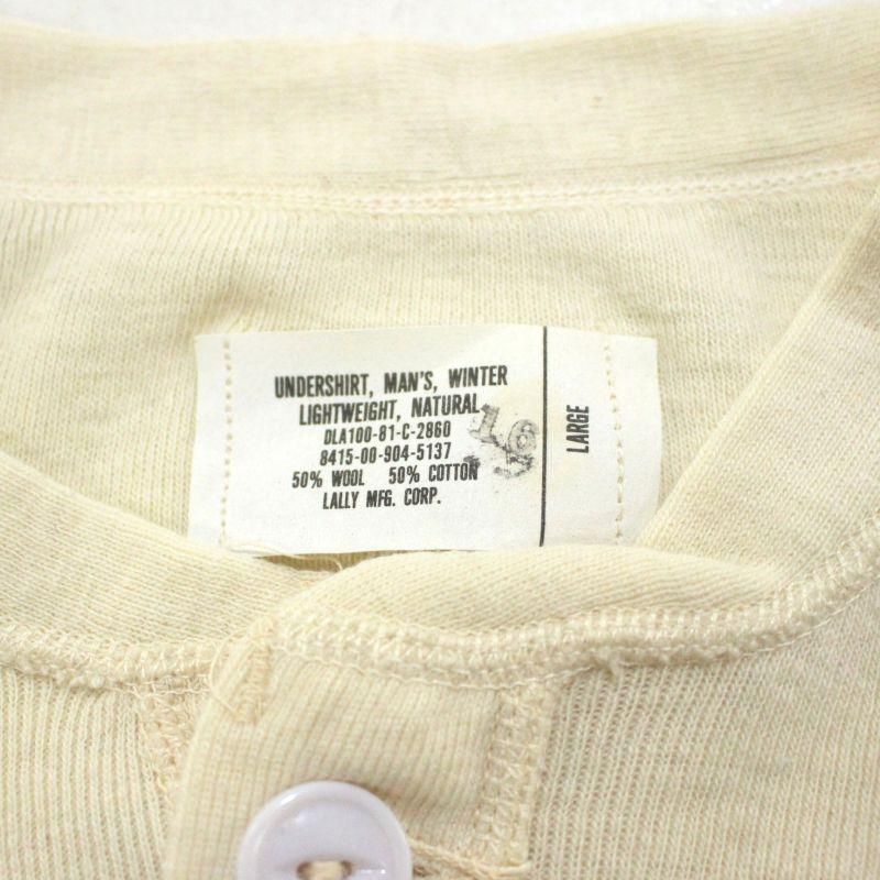 80s USA製 vintage U.S.ARMY サーマル ヘンリーネック 長袖Tシャツ メンズ 表記Lサイズ