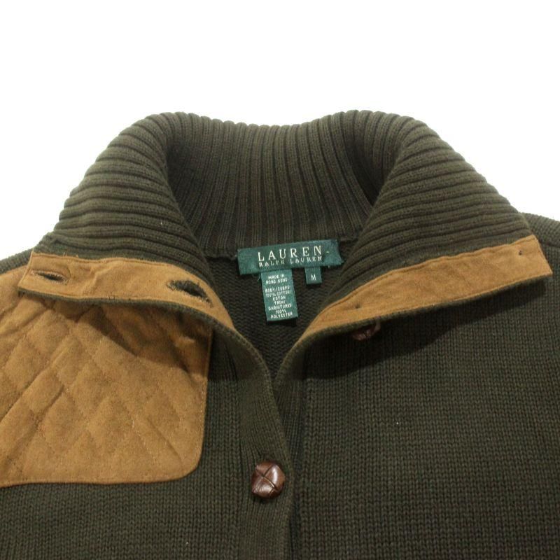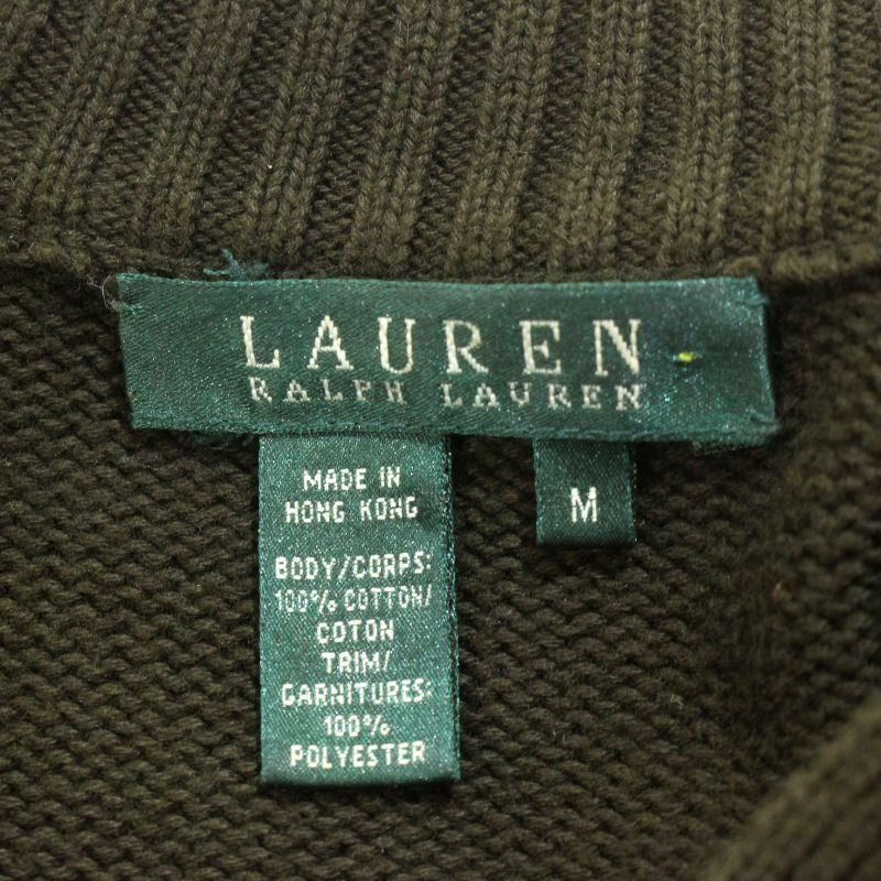 90s vintage LAUREN ハンティング タートルネック コットン ニットカーディガン レディース 表記Mサイズ