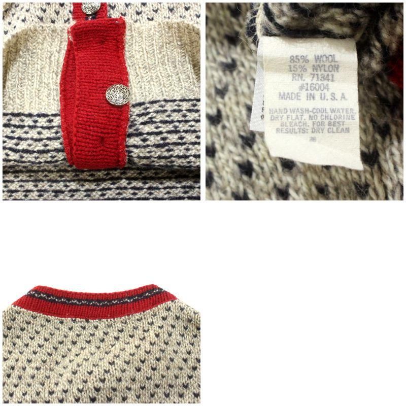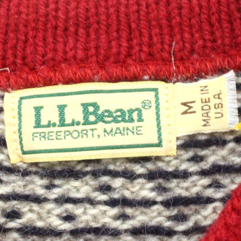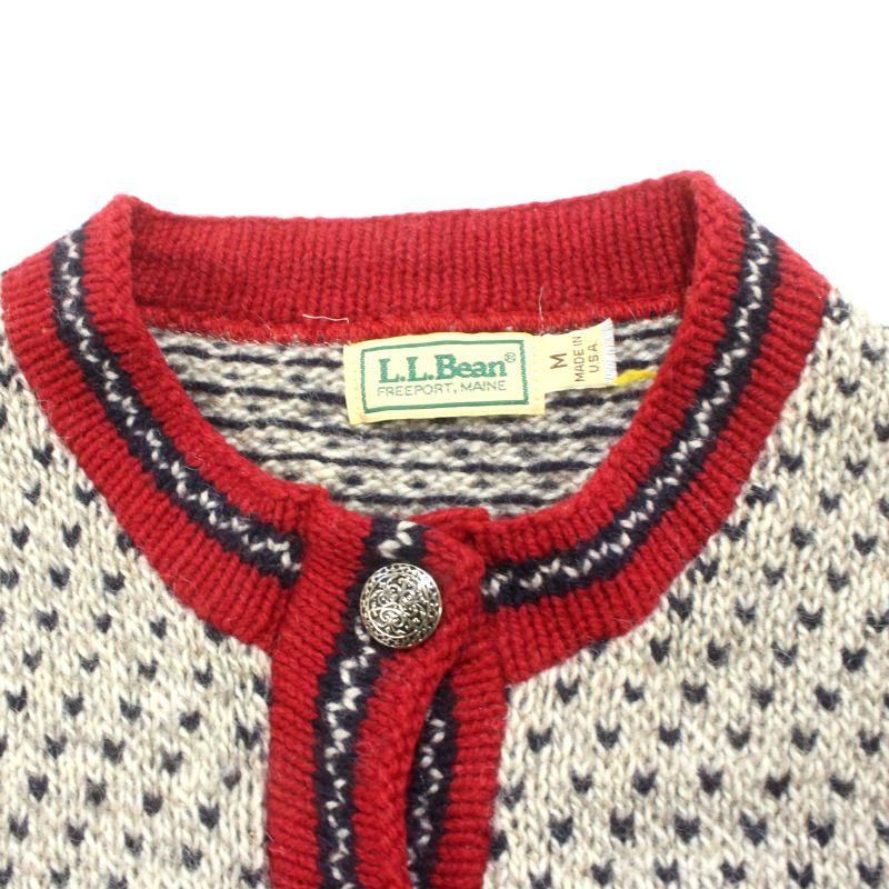 80s USA製 vintage L.L.Bean バーズアイ柄 メタルボタン ニットカーディガン レディース 表記Mサイズ